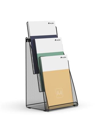 Praktický a elegantný drôtený stolový stojan na prospekty, ideálny do kancelárií, na recepčné pulty, do čakární alebo výstavných priestorov – všade tam, kde je dôležité prehľadné, usporiadané uloženie dokumentov a ich profesionálna prezentácia.
