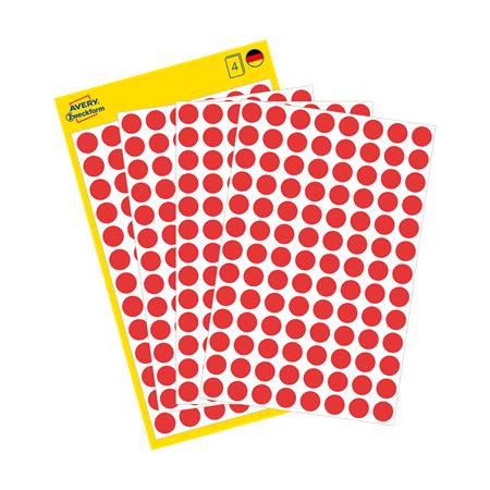Etikety, okrúhle, priemer: 8 mm, AVERY ZWECKFORM, červené, 416 etikiet/bal