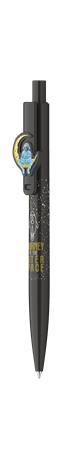 Guľôčkové pero, 0,8 mm, stláčací mechanizmus, ICO "Astronaut", čierne-čierne