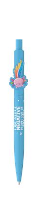Guľôčkové pero, 0,8 mm, stláčací mechanizmus, modré telo pera, ICO "Axolotl", modré