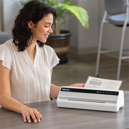 Laminovací stroj do stredne veľkej kancelárie,pre pravidelné používanie. Vhodný na laminovanie za studena, alebo za tepla 80-125 mikr. Technológia „InstaHeat”: zabezpečuje extra rýchle zahrievananie, stroj je pripravený na používanie za 60 sekúnd. Technológia „100% Jam Free”: pri použití laminovacej fólie Fellowes je laminátor 100% bez zaseknutia, technológia "Auto Shut Off™": energeticky úsporná funkcia, laminovací stroj sa automaticky vypne, keď sa 30 minút nepoužíva. Hmotnosť (kg):2,25 Rozmery (mm):105 x 436 x 139 mm Šírka dávkovača:235 mm (A4) Počet valcov:2 Doba zahrievania:60 sec (InstaHeat) Nastavenie teploty:3 stupne, Maximálna hrúbka laminovacej fólie:125 mikr. Rýchlosť laminácie (cm/min):30 Štartovacia sada pre 10 dokumenov