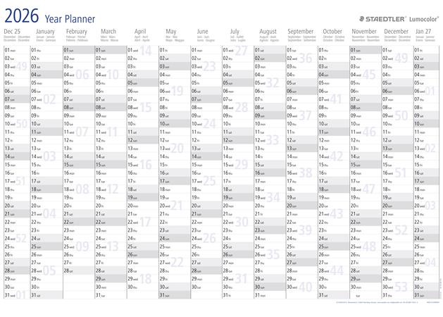 Ročný plánovač, stierateľný, v anglickom jazyku, 84x60 cm, STAEDTLER "Lumocolor® 641 YP", 2026